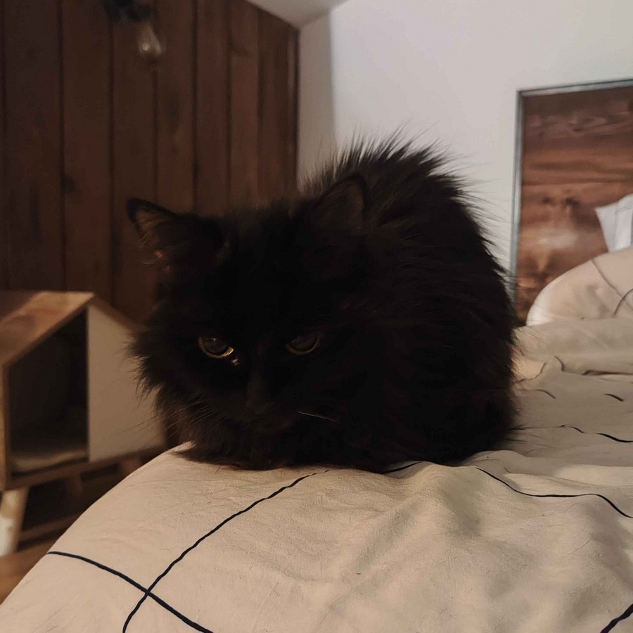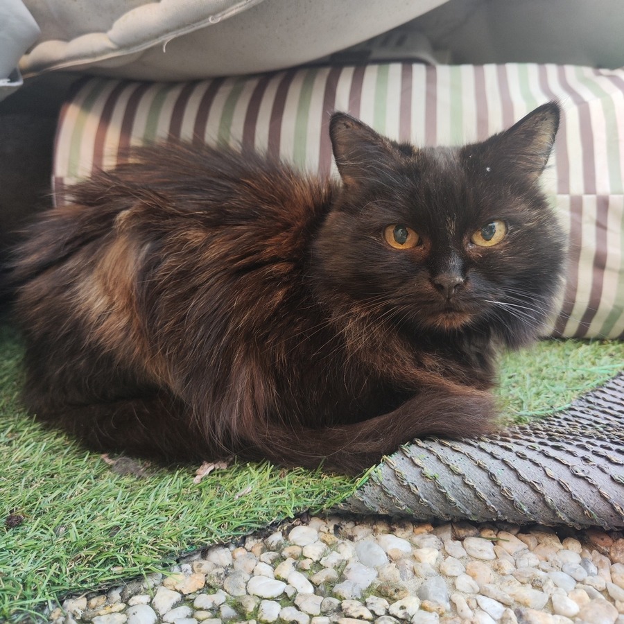 Elle est malvoyante, a de l’hypertension, mais a l’air de vivre sa meilleure vie en commandant sa famille d’accueil qui est son coussin préféré !!!